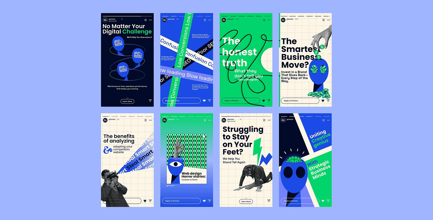 Clickable brand-first designs for paid media platforms.